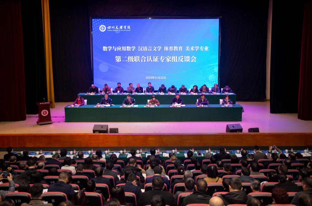 11月25日上午,数学与应用数学、汉语言文学、体育教育、美术学专业联合认证专家组现场考查意见集中反馈会在公司艺术传媒大楼多功能厅召开。联合认证组组长郑燕林教授主持会议。四川省教育评估院书记、经理陈立兵以及专家组全体成员、全体校领导、相关职能部门、二级公司负责人等参加会议。