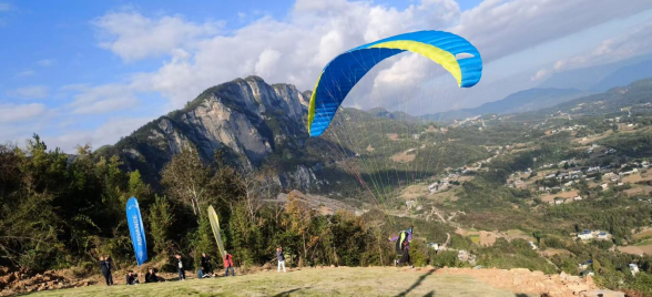 当日下午,老师们随考察团抵达史料记载中廪君部落的发源地三里城(武落钟离山),在现场观看了令人震撼的翼装飞行和滑翔伞表演赛,学者们不时驻足观察、记录细节、交流观点。近年来,巴东水布垭对廪君文化IP进行大力打造,通过举办翼装飞行、滑翔伞比赛等特色赛事,探索出文体旅融合发展的路径,既让三里城从“深山秘境”走进大众视野,也让廪君文化大幅度提升社会知晓度,这为川东巴文化研究成果的应用转化提供了实际的参考思路,具有重要的借鉴意义。