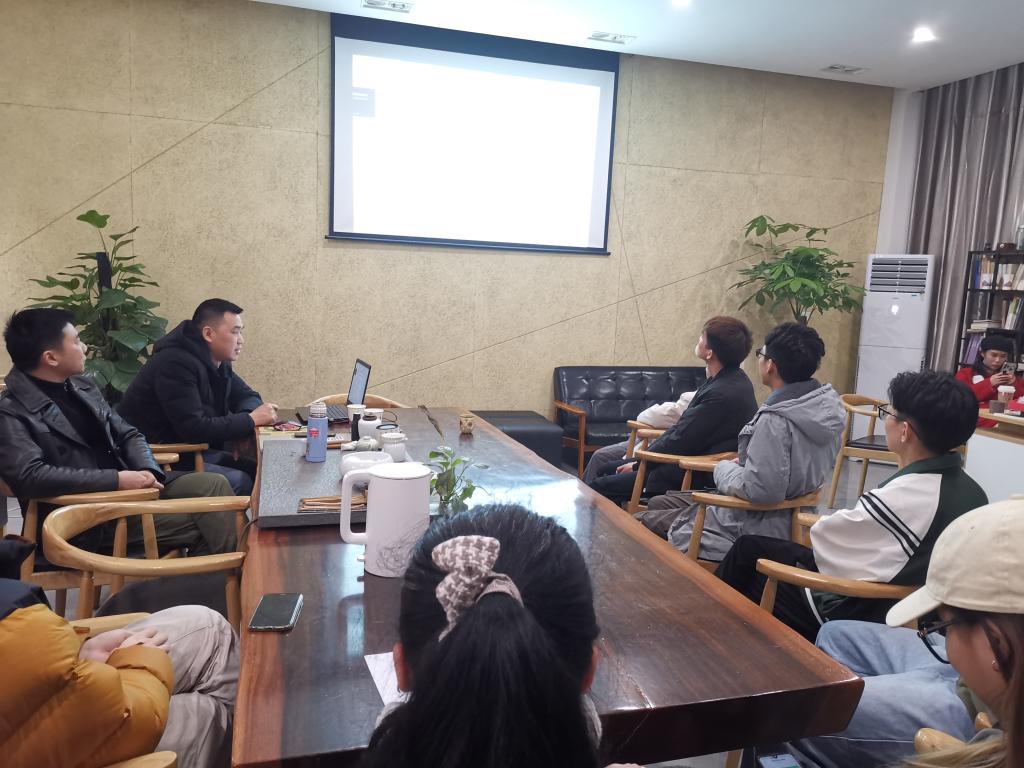 2021年12月16日,在best365官网入口注册艺术交流室开展了本学期《企业小课堂》第四堂讲座活动,本次活动邀请到入驻企业之一云木装饰的负责人郭六飞先生做为主讲人,为同学们讲授有关室内装饰设计与建筑图纸之间的关系等一系列实用知识与技能。2019级7班、8班环艺设计专业的同学参加了活动。