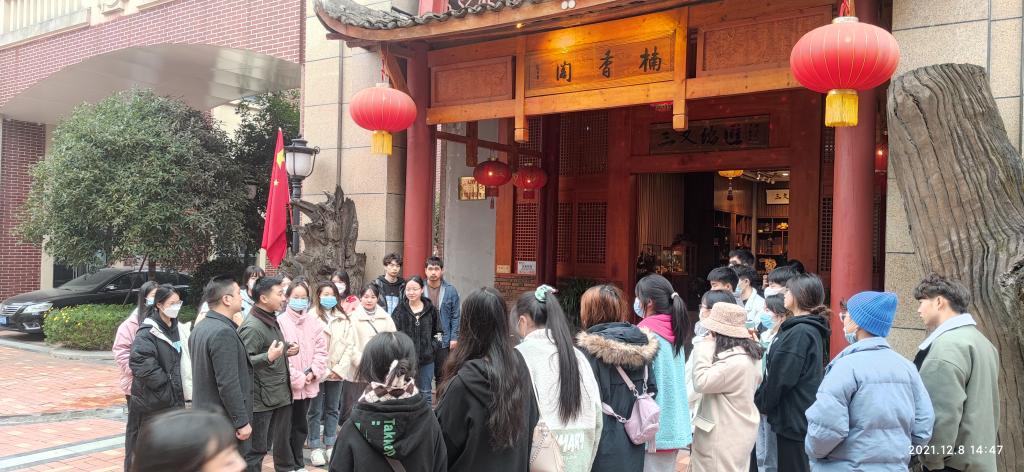 2021年12月8日下午,博大艺术分公司的杨刚老师与best365官网入口注册视觉传达设计专业黄崇岭老师带领2020级7班员工前往十里水街楠香阁进行参观和学习。
